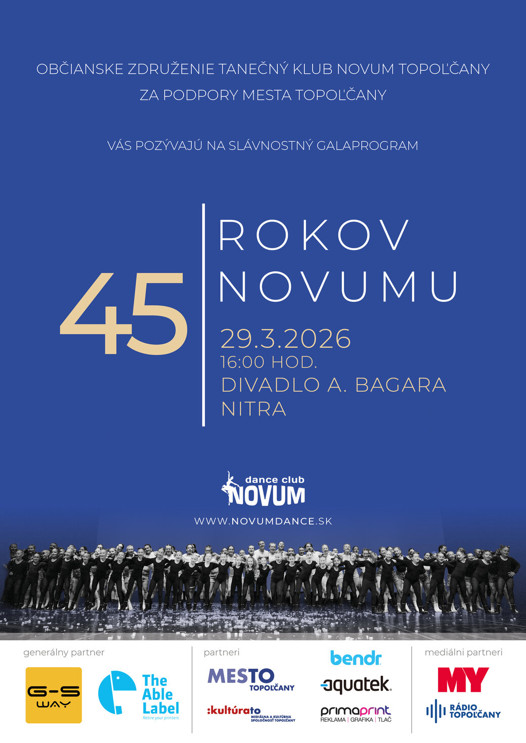 Slávnostný gala program tanečného klubu NOVUM pri príležitosti 45.výročia založenia sa bude konať dňa 29.marca 2026 v Divadle A.Bagara v Nitre.